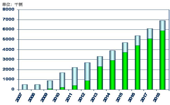 圖1:全球混合動(dòng)力汽車(HEV)、充電式混合動(dòng)力電動(dòng)汽車(PHEV)、純電動(dòng)汽車(EV)市場(chǎng)規(guī)模