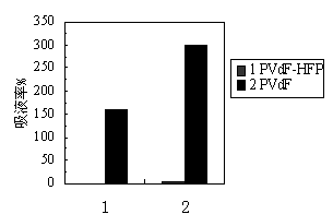 在RH<3%的環(huán)境中,將待測(cè)膜在1M LiPF6/EC+DMC(v/v=1:1)電解液中浸泡10分鐘后取出,夾在濾紙中吸去表面游離電解液,分別稱(chēng)取吸液前后待測(cè)膜的重量W1、W2,吸液率的計(jì)算如下: