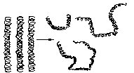 由圖4可見(jiàn),采用PVdF為骨架材料時(shí)的電解質(zhì)膜其吸液率幾乎是PVdF-HFP骨架電解質(zhì)膜的兩倍。從高分子溶液的結(jié)構(gòu)上看,PVdF與PVdF-HFP都屬于線(xiàn)型高分子聚合物,在溶液中均呈線(xiàn)團(tuán)狀無(wú)規(guī)蜷曲,如圖5所示。如果在溶液中加入增塑劑,增塑劑進(jìn)一步削弱分子鏈間的作用力,就起到了對(duì)聚合物稀釋的效果。
