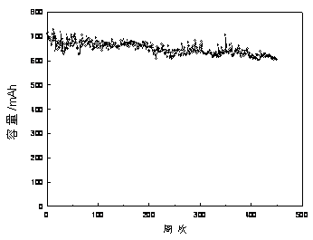 分別以PVdF和PVdF-HFP為聚合物骨架材料拉制成的電解質(zhì)膜、電極膜組裝成電池。實(shí)驗(yàn)結(jié)果證實(shí)了前面的推斷。PVdF體系的聚合物鋰離子電池可在0.5C倍率下循環(huán)400多周(見(jiàn)圖9),而PVdF-HFP體系的聚合物鋰離子電池最高循環(huán)壽命則只有近200周。