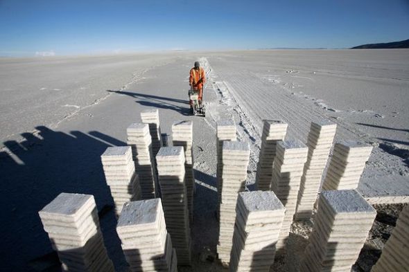 烏尤尼鹽沼上成塊的鹽摞起來形成的高高的結構,看起來就像是荒漠里的摩天大樓。盡管這里位置偏遠,但是現在它已經變成一個旅游勝地,每年有6萬名游客來到這里。玻利維亞政府表示,開采鋰礦不會對游客和當地人造成影響,但是環保組織表示,這一過程可能會導致大部分地方缺水,或者造成水污染。