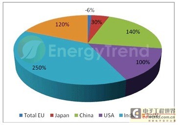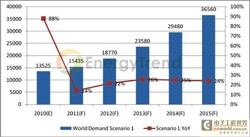 而在價(jià)格走勢(shì)上,受到歐洲主要國家下修補(bǔ)助金額的影響,如價(jià)格不能同步反應(yīng)將IRR的表現(xiàn),進(jìn)而降低民眾安裝的意愿,因此集邦科技認(rèn)為2011年Q1的價(jià)格有望來到每瓦1.25美元。展望未來,集邦科技認(rèn)為,全球太陽能市場(chǎng)仍維持穩(wěn)健成長的態(tài)勢(shì),全球需求至少將以每年20%~25%的速度成長,但2011年受到主要市場(chǎng)下修補(bǔ)助金額的影響,成長幅度將會(huì)低于20%。