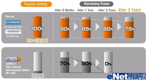 雖然鎳氫電池電池比之前在鎳鎘電池容量更大更環保,但是其較高的自我放電性和記憶效應讓它的使用時間和壽命受到了一定限制,而三洋Eneloop鎳氫電池大大提升了鎳氫電池適用能力。