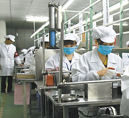 近日,江西福斯特新能源有限公司生產(chǎn)出了該市第一批鋰離子電池。圖為該公司員工正在生產(chǎn)鋰離子手機(jī)電池。