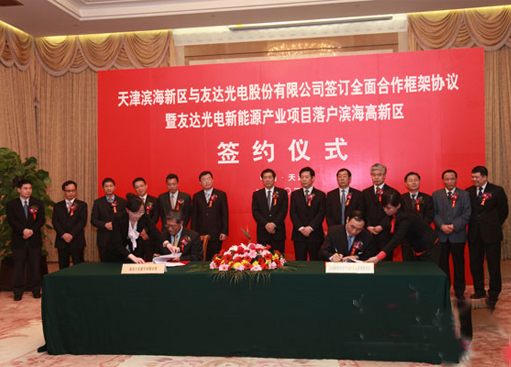 3月31日,濱海新區、濱海高新區分別與友達光電公司簽署全面合作協議和項目落戶協議。天津市委副書記、濱海新區區委書記何立峰,市委常委、常務副市長楊棟梁,副市長王治平出席簽約儀式。