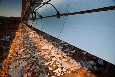 光電板控制 未來的能源都有曾經的過去。舊鏡子碎片躺在他們替代品的腳下,這里是加州有25歷史的太陽能能源生產系統,美國的第一個商業太陽熱能工廠。