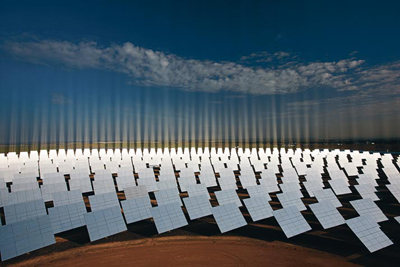 在西班牙南部的一個電廠,鏡子大如房屋,不過也只是捕獲到落在地球上的120萬億瓦的陽光一小部分。由于政府的補貼這一昂貴的有前景能源,所以歐洲有世界上最大的太陽能投資。