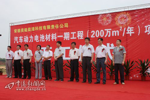 29日上午,常德美能汽車動力電池材料一期項目正式在德山開發區開工建設,這一項目開啟了我市新能源工業領域新篇章,也填補了我國在汽車動力電池材料生產方面的空白。市委書記卿漸偉出席開工儀式并宣布項目開工。