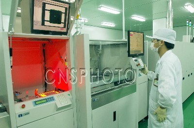 技術(shù)人員正在檢測單晶硅太陽能電池片