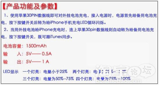 首先我們了解一下杰美特電池套的功能及參數,這款產品內置有1500毫安時的電池,輸入/輸出電壓為5V,符合國內用電標準。當iPhone 4插入電池套以后,也不會影響跟iTunes之間的同步,一切只需要按一個按鍵開關。