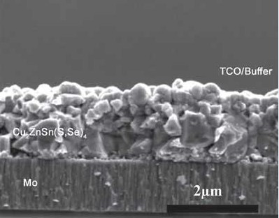 當前的紀錄,銅鋅錫硫族太陽能電池光電轉換效率超過10.1%,這一紀錄是由米茲(Mitzi)和IBM的同事制造的(《高效率太陽能電池采用地球上豐富的液體處理吸收劑》),使用的前體需要用肼(hydrazine)穩定,肼是一種具有肝毒性、易爆的致癌溶劑。