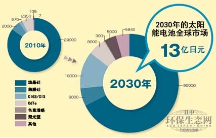 根據富士經濟公司的調查,2010年的市場規模為3.4162萬億日元。預計2011年將擴大到4.5171萬億日元,約增長3成。明年,采用全量固定價格收購制度的日本市場也有望大幅擴大。