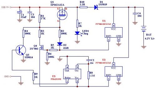 乍看之下,這個方案采用了三個IC,可是U1和U2是采用的SOT-23或者TO-92封裝,就好像普通三極管一樣,其價格也就是2-3個三極管的價格,而U3(PT8A2513NE)也是采用的TO-94封裝,外形和三極管很相似,價錢也相當便宜,不過,這個電路可以實現智能判斷電池是否過放電,決定是否在開始充電時采用小電流預充,另外,采用U3后也將充電后期的補充充電過程延長到大約一個小時!