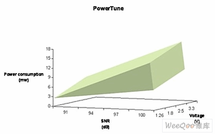 功率調節能夠大幅延長便攜式音訊裝置的電池使用時間。低功耗運作模式能夠使具備訊號處理功能的超低功耗編譯碼器將來電 / 簡訊鈴聲的功耗降至 5mW 以下,并且使 8kHz 或 16kHz 語音通訊的功耗降至 7mW 以下,同時使最高音質 44.1kHz 立體聲耳機音樂播放的功耗降至 10mW 以下。