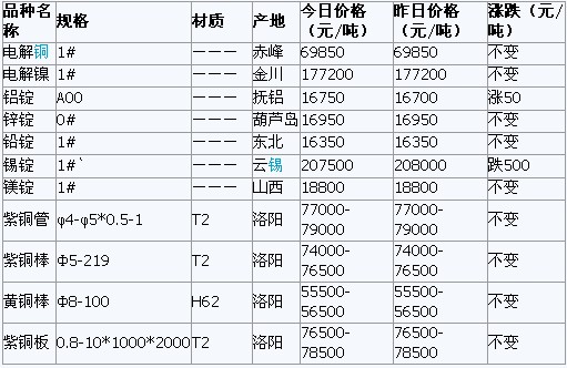 上一篇: 2011年5月31日廣州有色金屬市場行情