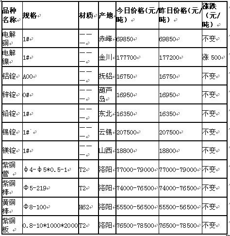 上一篇: 2011年6月1日濟南有色金屬市場行情