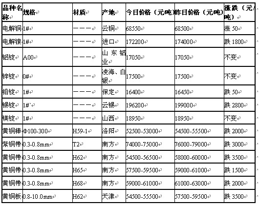 上一篇: 2011年6月14日北京有色金屬市場行情