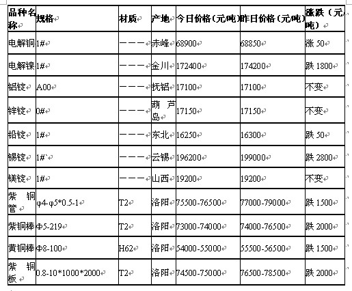 2011年6月14日沈陽有色金屬市場行情