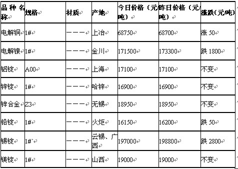 2011年6月14日無錫有色金屬市場行情