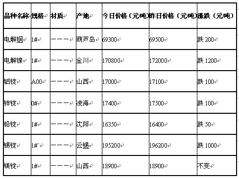 上一篇: 2011年6月16日廣東有色現貨報價(南儲)(銅鋁鉛鋅鎳鈷鎘錳鎂鉍)