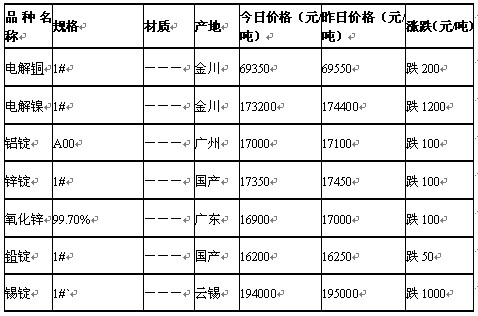 上一篇: 2011年6月16日無錫有色金屬市場行情