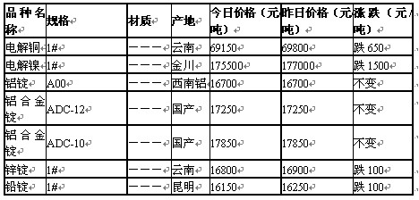 2011年6月2日重慶有色金屬市場(chǎng)行情