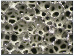 新開發的多孔體為三維網眼狀結構。空孔呈球狀,空孔之間彼此相連,因此不會堵塞。氣孔率最高為98%,高于金屬無紡布及泡沫金屬等其他金屬多孔體。通過切割和沖壓等能加工成多種形狀。