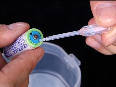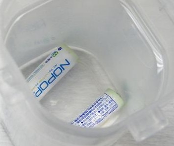 我們準(zhǔn)備了幾種液體:純凈水、雪碧、芬達(dá)、王老吉、六神花露水。我們用兩種中方法給電池充電,一種用滴管吸水,注入,另一種把電池泡在水中30秒,看看哪種效果更好。電池有兩個孔,注水時可以往任意一個孔注水。