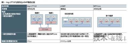 在緩存的一致性控制方面,ARM公司網已經有了“MPCore”多核技術,可以對CPU內核內一次緩存的一致性進行控制。不過,MPCore以最大四核的同質架構多核為前提,不支持big.LITTLE技術這種異質架構多核。