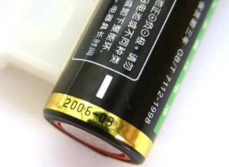 4.生產(chǎn)批號識別,正品電池的生產(chǎn)批號采用的是機(jī)打方式,字體是由點陣組成,而假貨的批號則是印刷在絕緣紙上的,一看便知,見下圖。