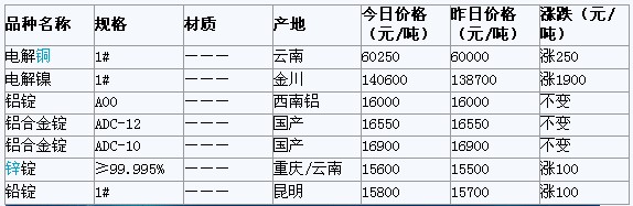 2012年3月14日重慶有色金屬市場(chǎng)行情