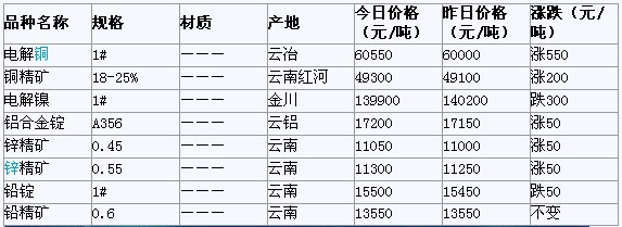 上一篇: 2012年3月16日昆明有色金屬市場行情