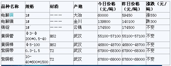 2012年3月16日武漢有色金屬市場(chǎng)行情
