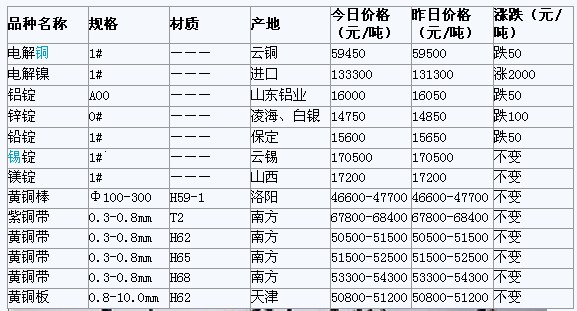 2012年4月5日天津有色金屬市場(chǎng)行情