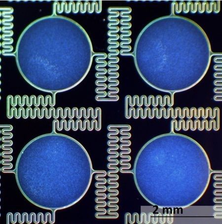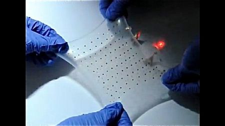 來自美國西北大學(Northwestern University)的科學家研發出一款可拉伸的柔性鋰電池板,在這個硅膠材料底板上分布有100個圓盤電極,彼此之間依靠“S”形排列的導線相連,當拉伸底板時,這些導線會像彈簧一樣伸展并能夠恢復原狀。據稱,此電池板可拉伸300%而不影響正常使用。