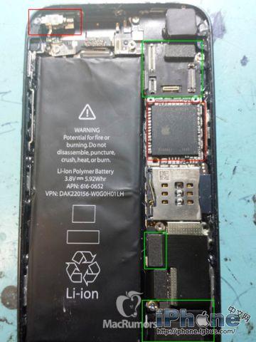 而現(xiàn)在macrumors網(wǎng)站已經(jīng)率先曝光了“iPhone5S”的真機(jī)照。通過照片可以看出其電池容量為5.92Whr,相比iPhone5的5.45Whr有提升。處理器底部的“1243”日期代碼顯示該芯片是在2012年第43周制造的,擁有雙LED閃光燈。