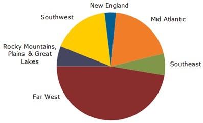 圖一美國(guó)10GW光伏安裝量地區(qū)分布