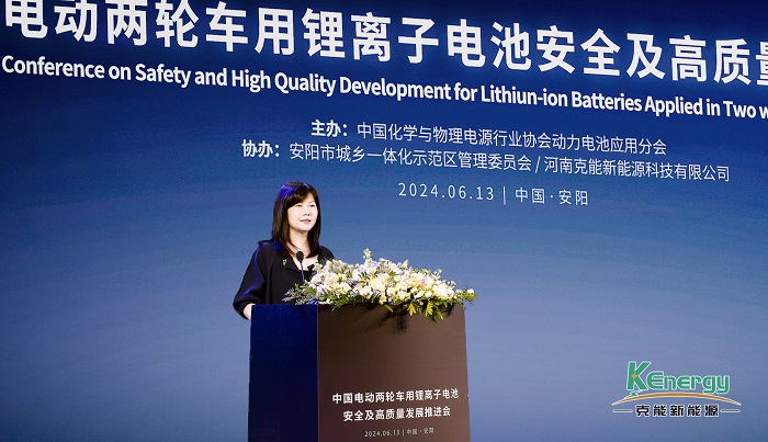 6月13日,“2024中國電動兩輪車用鋰離子電池安全及高質量發展推進會暨克能新能源2024新品發布會”在河南安陽圓滿舉行。會議由中國化學與物理電源行業協會動力電池應用分會主辦,安陽市城鄉一體化示范區管理委員會、河南克能新能源科技有限公司協辦,與會專家就電動兩輪車用鋰離子電池安全等問題進行深入研討。在推進會后,克能新能源舉行了『克能電池 安芯常伴』2024新品發布,隆重推出克能安芯電池X系列高安全電動自行車用鋰電池。