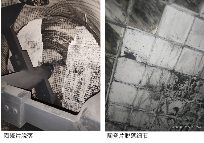 以犁刀混合機為例,犁刀混合機是鋰電行業(yè)的主流混合設備,國內外有多家品牌可提供同類產品。即便是國外的知名品牌,犁刀混合機的內襯陶瓷貼片普遍采用膠水粘貼,有縫隙、易脫落。在產線運行過程中,陶瓷貼片一旦大量脫落,發(fā)生露鐵金屬事故,就會導致生產物料受污染,以致造成產線停產。