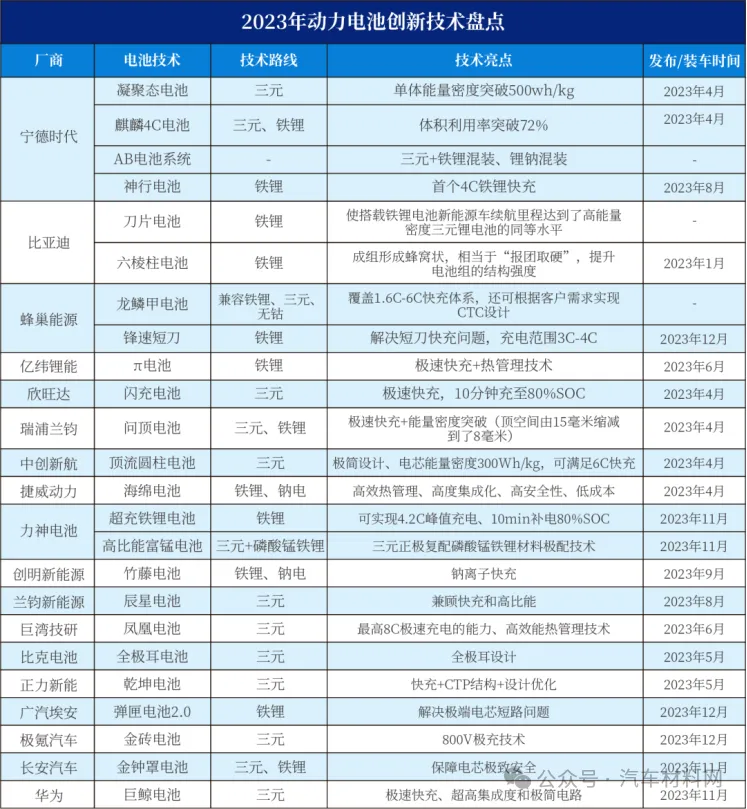 縱觀2023年動(dòng)力電池創(chuàng)新技術(shù),快充、安全性、能量密度、減重是貫穿始終的關(guān)鍵詞。
